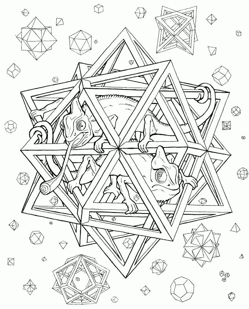 : Druckbar herunterladen Chamäleon Psychedelisch Malvorlage