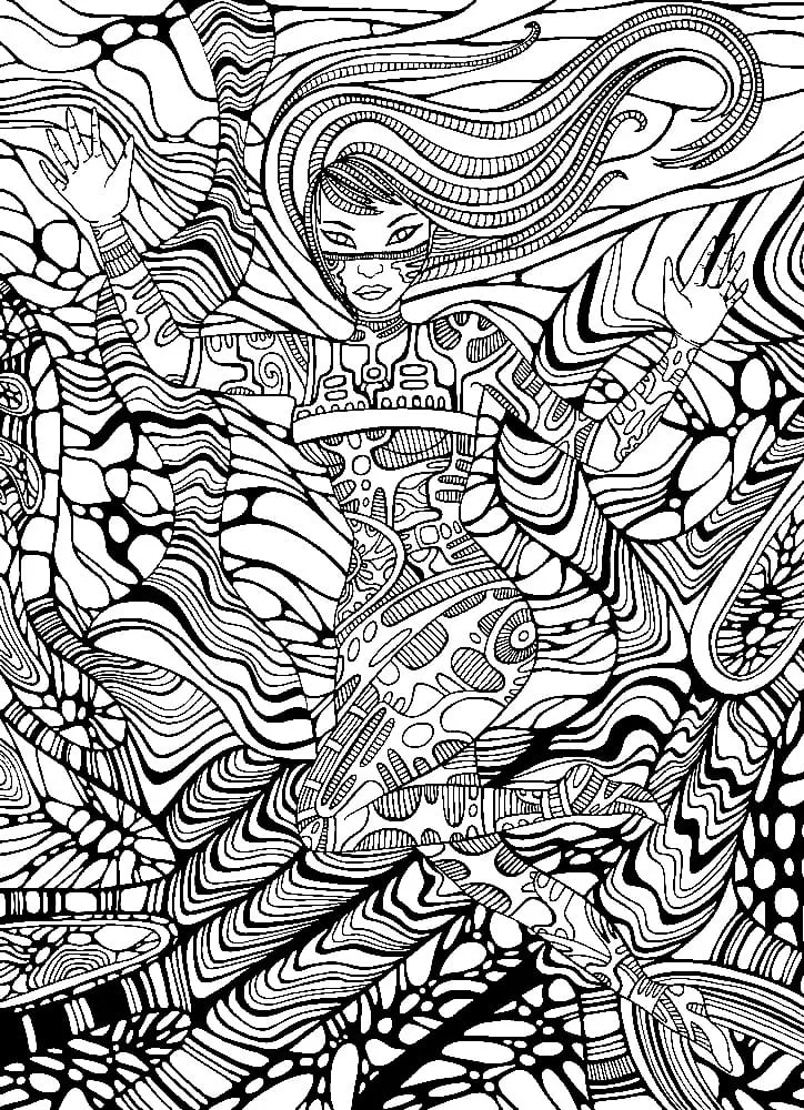 : Druckbar herunterladen Cyberpunk Mädchen Psychedelisch Malvorlage
