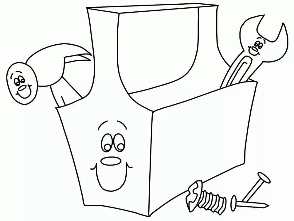 : Druckbar herunterladen Cartoon-Werkzeugkasten Malvorlage