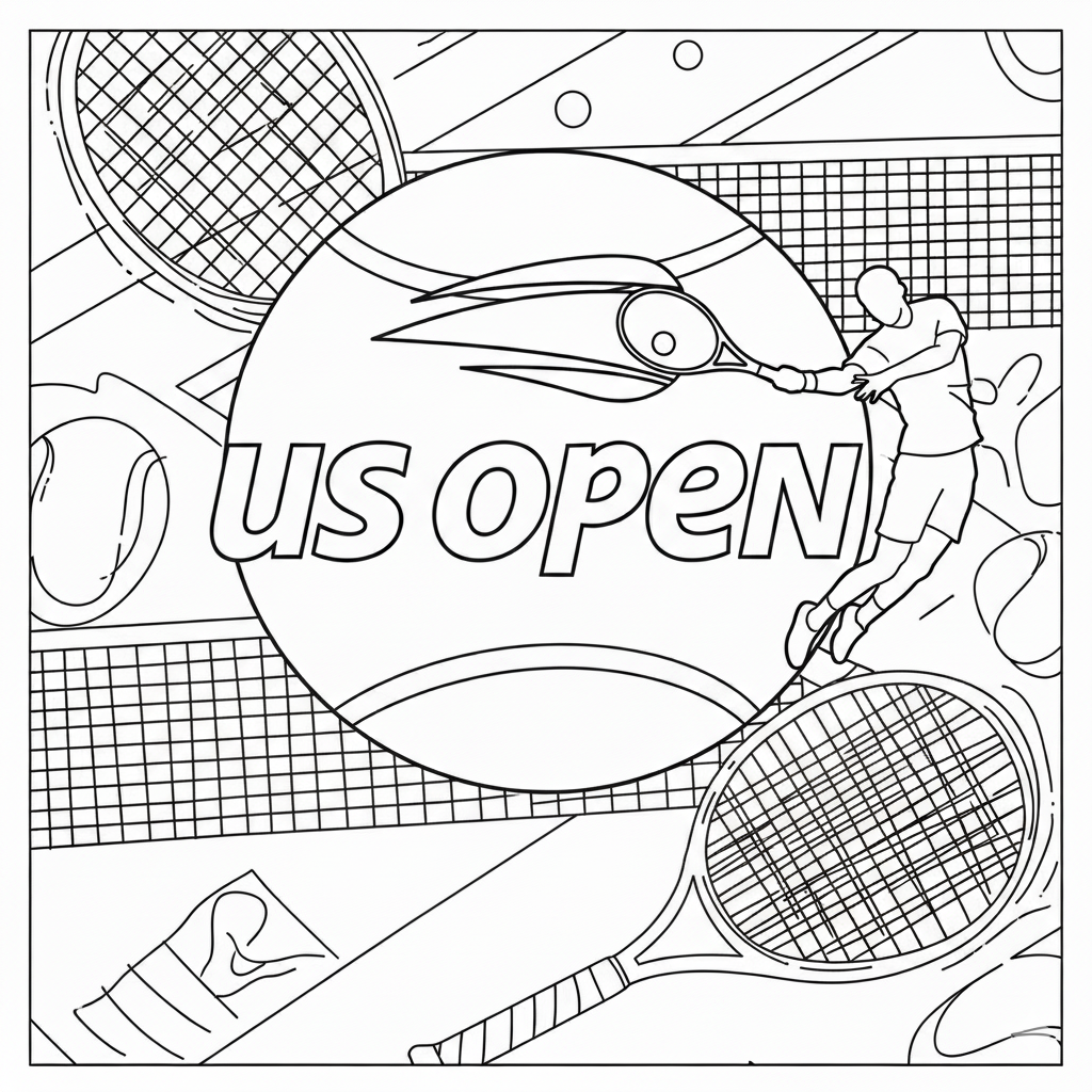 : Druckbar herunterladen US Open Tennis Coloring Page Malvorlage