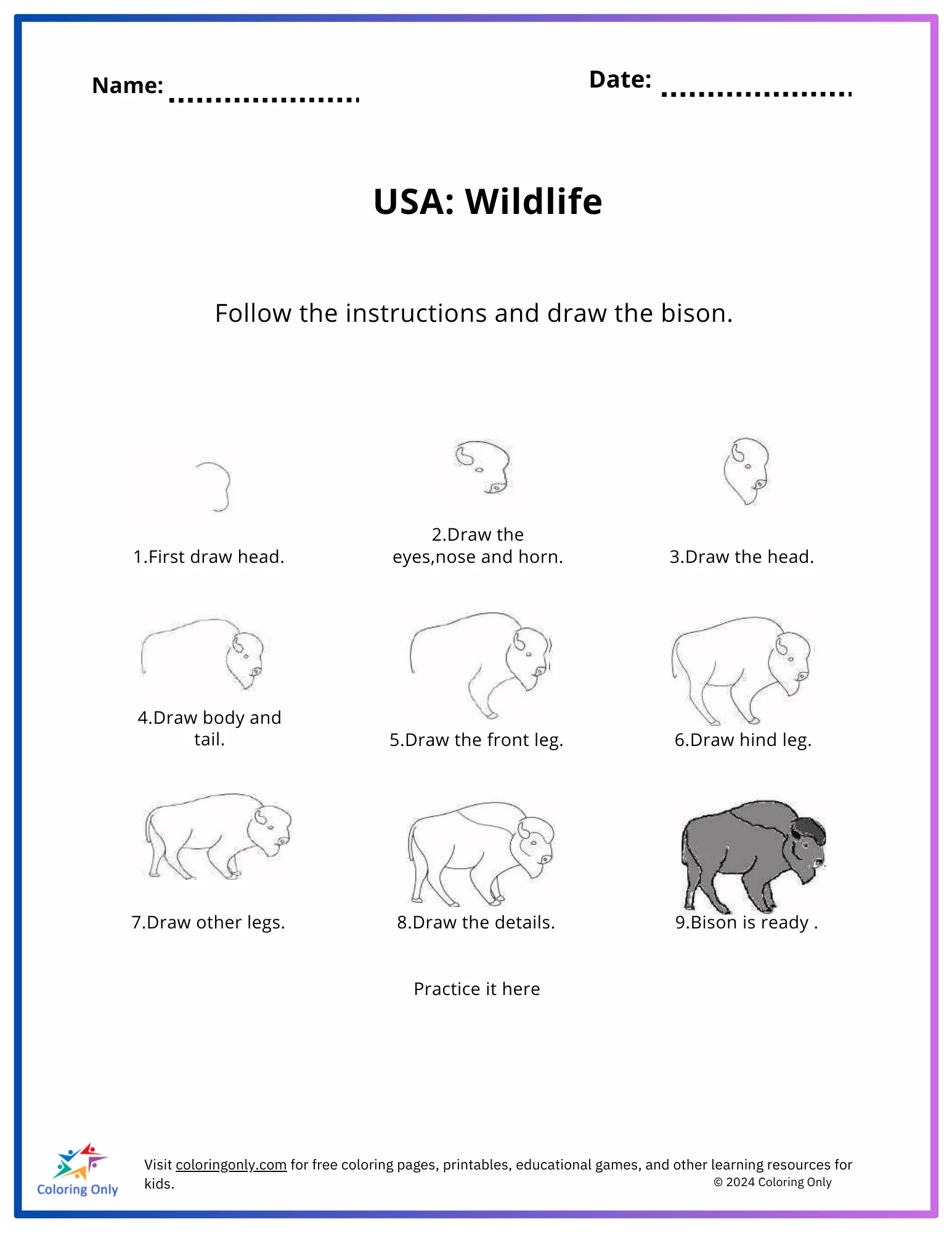: Druckbar herunterladen USA: Wildlife Free Printable Worksheet Malvorlage