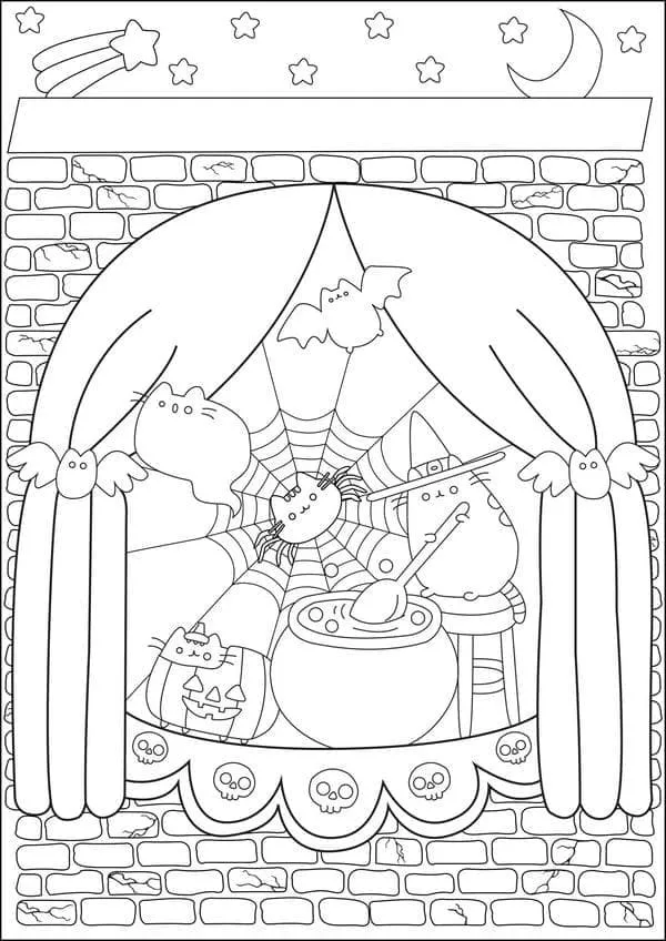 : Druckbar herunterladen Witch Pusheen Malvorlage