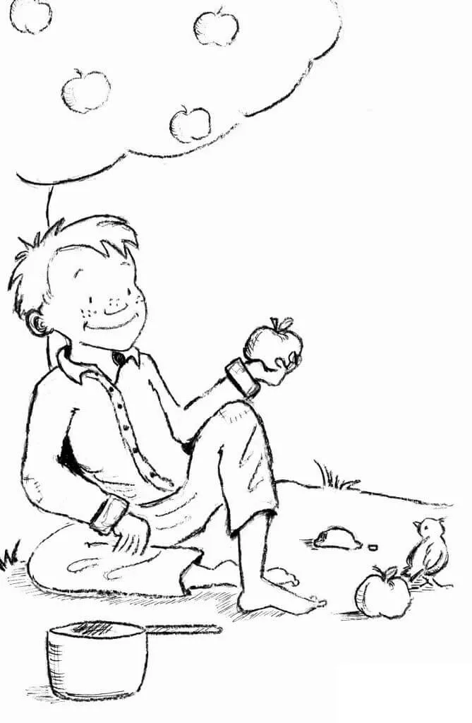 : Druckbar herunterladen Young Johnny Appleseed Malvorlage