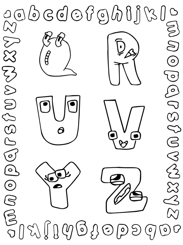 Coloring description : Download Printable Alphabet Lore Letter Q, R, U, V, Y, and Z Coloring Page
