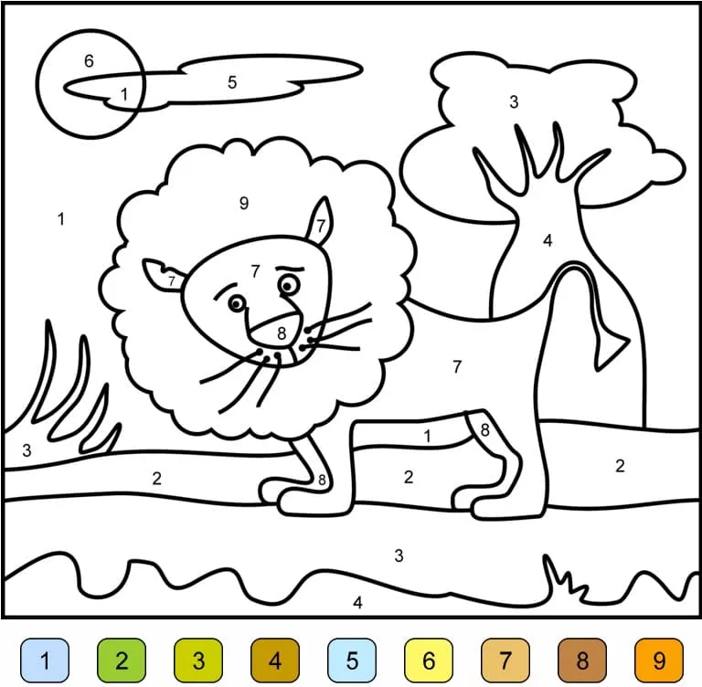 Coloring description : Download Printable Lion Color by Number Coloring Page