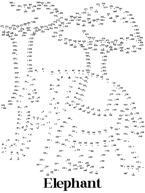 Elephant Animal Extreme Dot to Dot Coloring Page