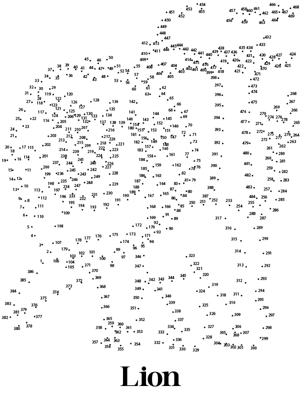 Extreme Dot to Dot Lion Coloring Page