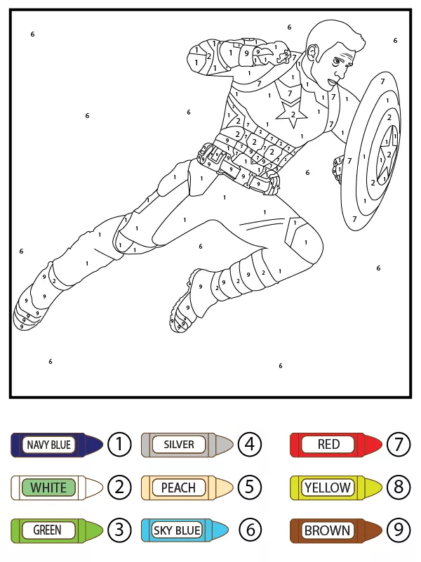 Coloring description : Download Printable Cinematic Captain America Color by Number Coloring Page