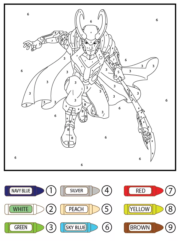 Coloring description : Download Printable Marvel’s Loki Color by Number Coloring Page