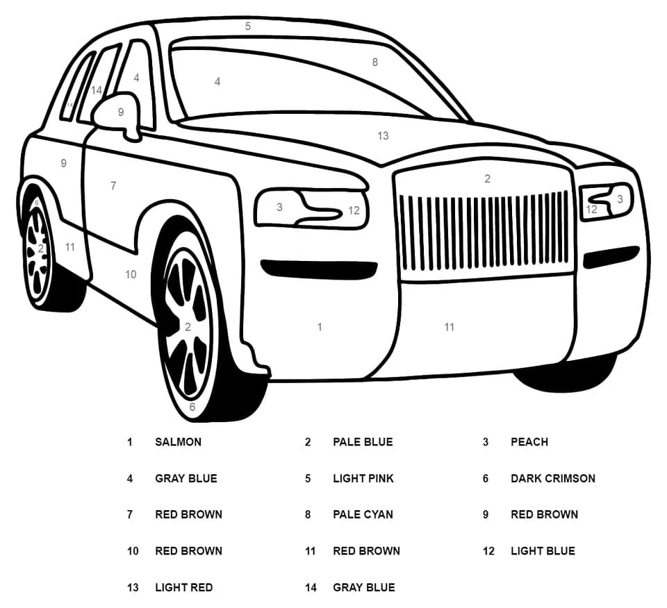 Coloring description : Download Printable Rolls Royce Color by Number Coloring Page