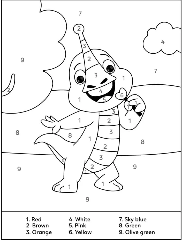 Coloring description : Download Printable Cute Dinosaur Singing Color by Number Coloring Page