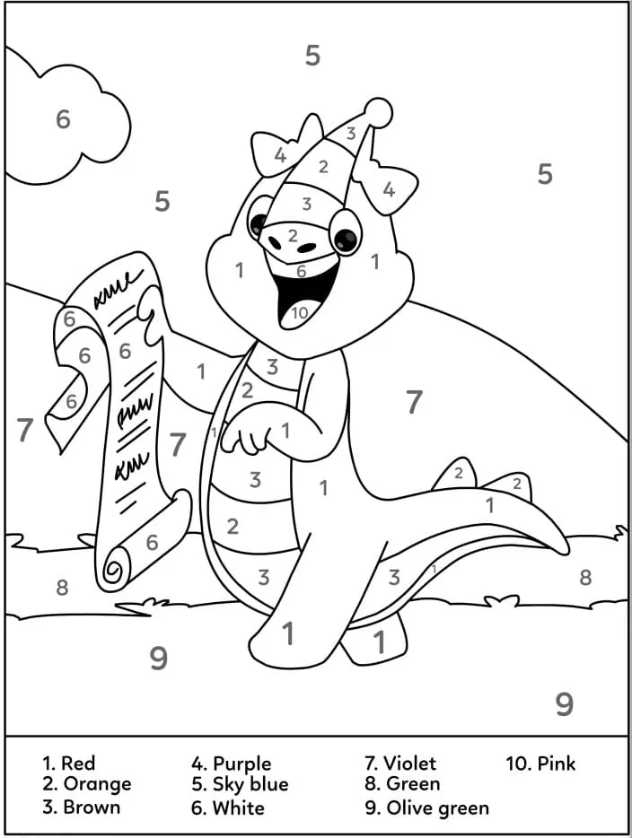 Coloring description : Download Printable Dinosaur Laughing Color by Number Coloring Page