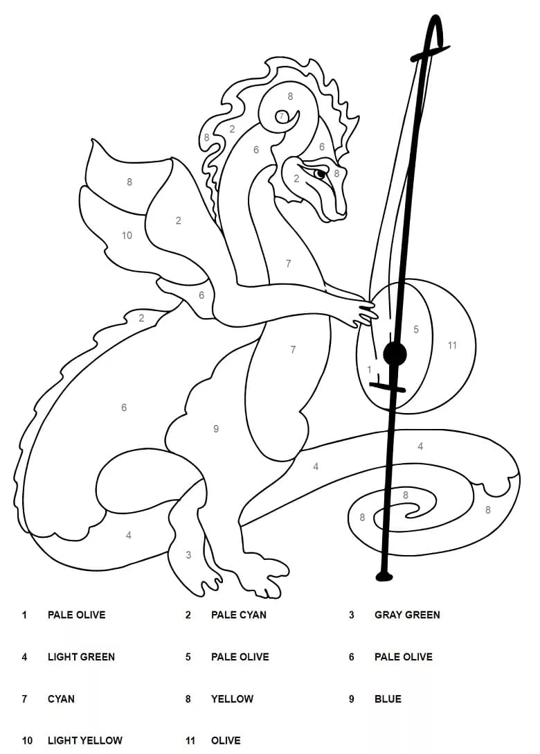 Coloring description : Download Printable Awesome Dragon Color by Number Coloring Page