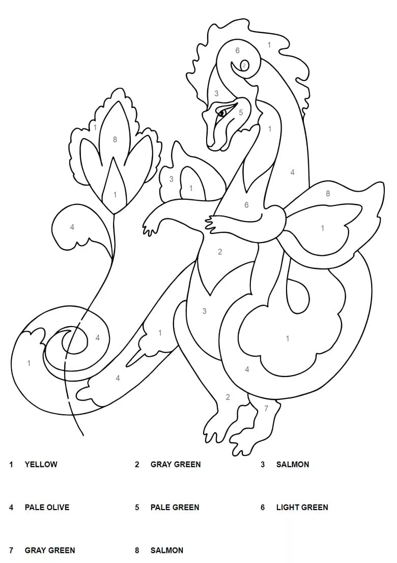 Coloring description : Download Printable Dragon and Flower Color by Number Coloring Page