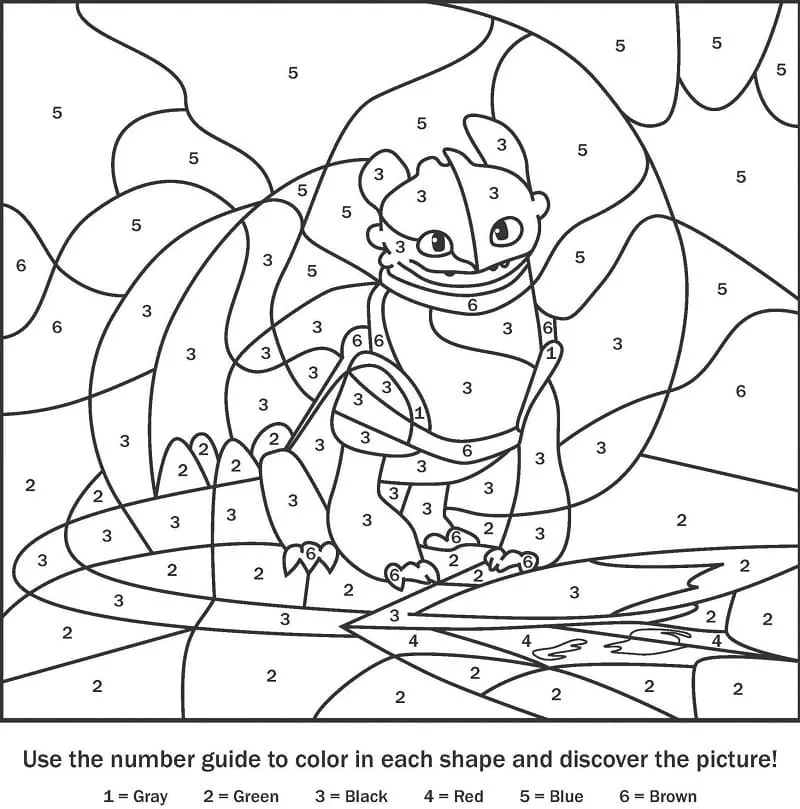 Coloring description : Download Printable Toothless Dragon Color by Number Coloring Page