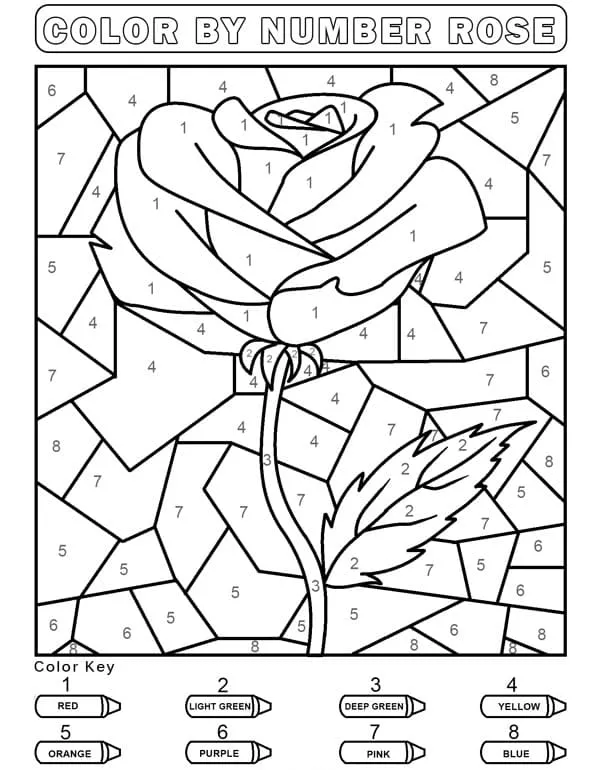 Coloring description : Download Printable Easy Rose Color by Number Coloring Page