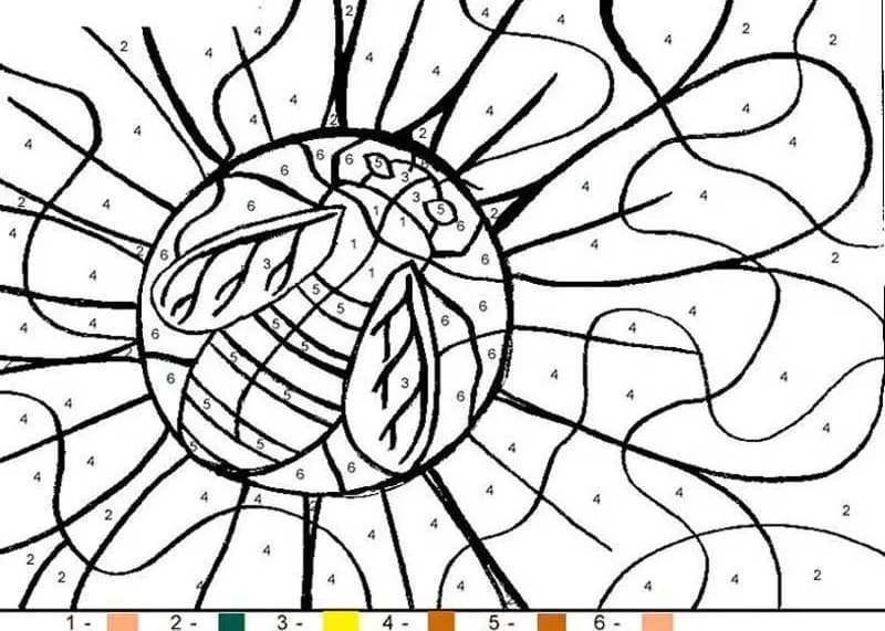 Coloring description : Download Printable Flower and Bug Color by Number Coloring Page