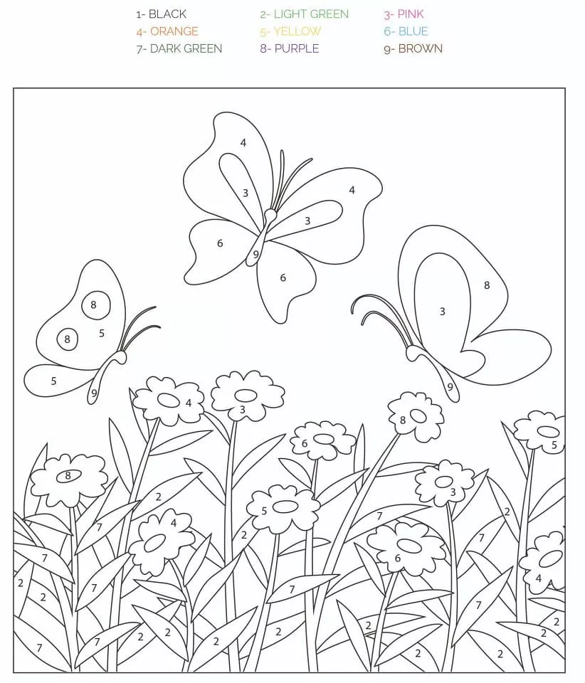 Coloring description : Download Printable Flowers Garden Color by Number Coloring Page