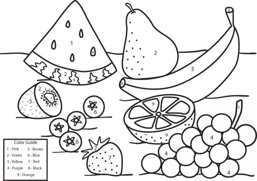 Coloring description : Download Printable Printable Fruits Color by Number Coloring Page
