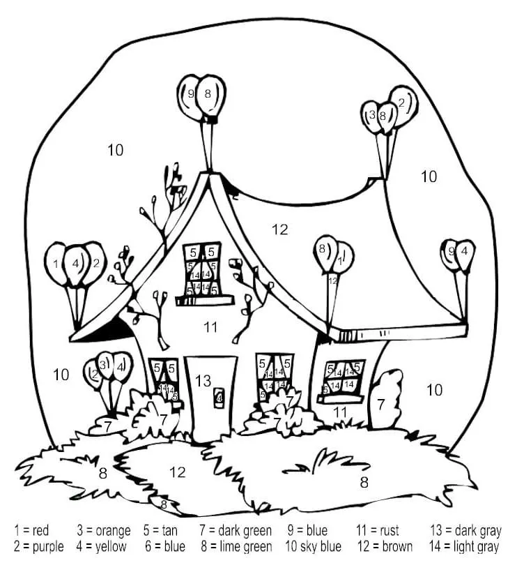 Coloring description : Download Printable Funny House Color by Number Coloring Page