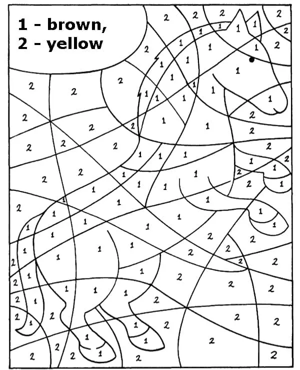 Coloring description : Download Printable Horse for Kindergarten Color by Number Coloring Page