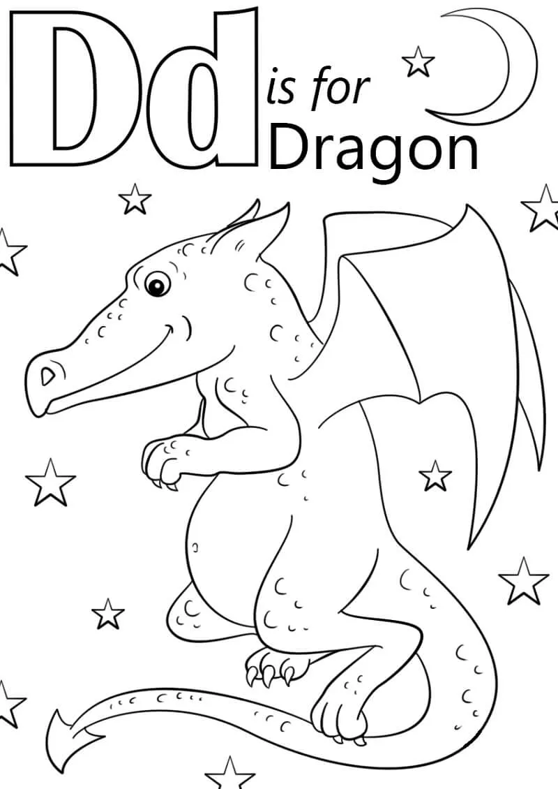 Coloring description : Download Printable Dragon Letter D Coloring Page