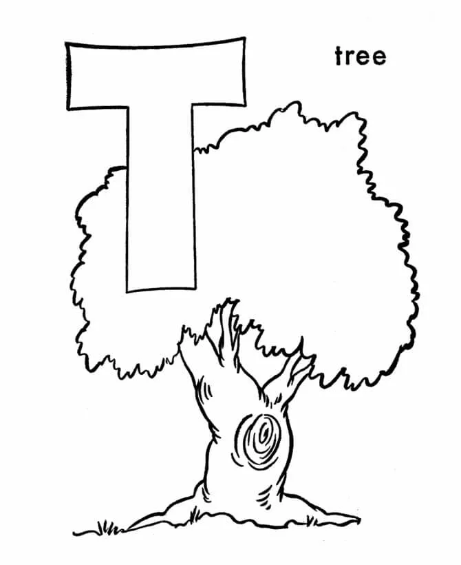 Coloring description : Download Printable Tree Letter T 1 Coloring Page