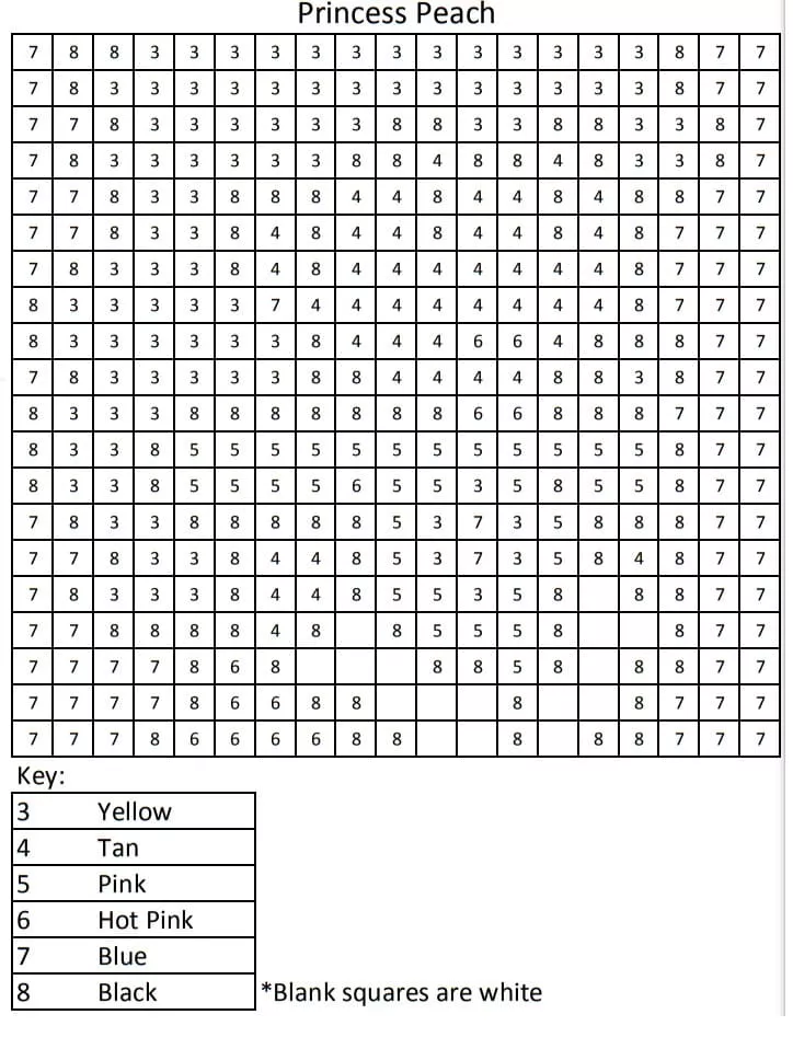 Princess Peach Color by Number