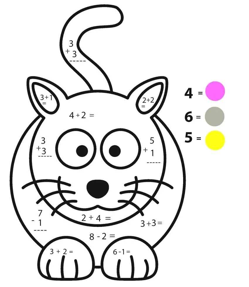 Coloring description : Download Printable Cat Math Worksheet Coloring Page
