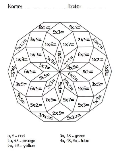 Free Multiplication Color by Number