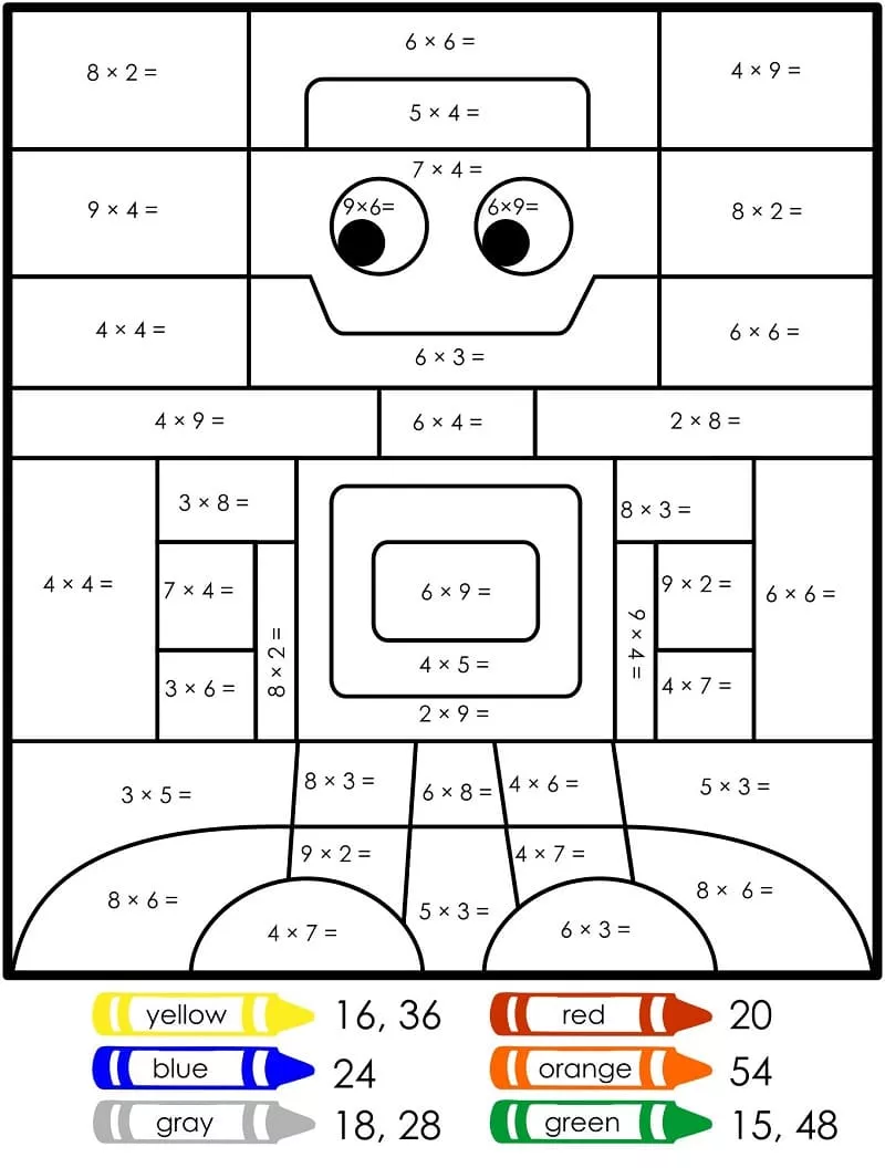 Coloring description : Download Printable Robot Multiplication Color by Number Coloring Page