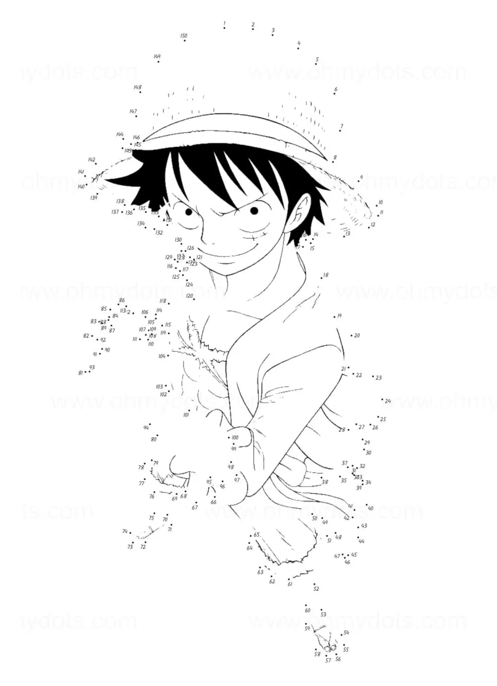 Coloring description : Download Printable Luffy Dot to Dots Coloring Page