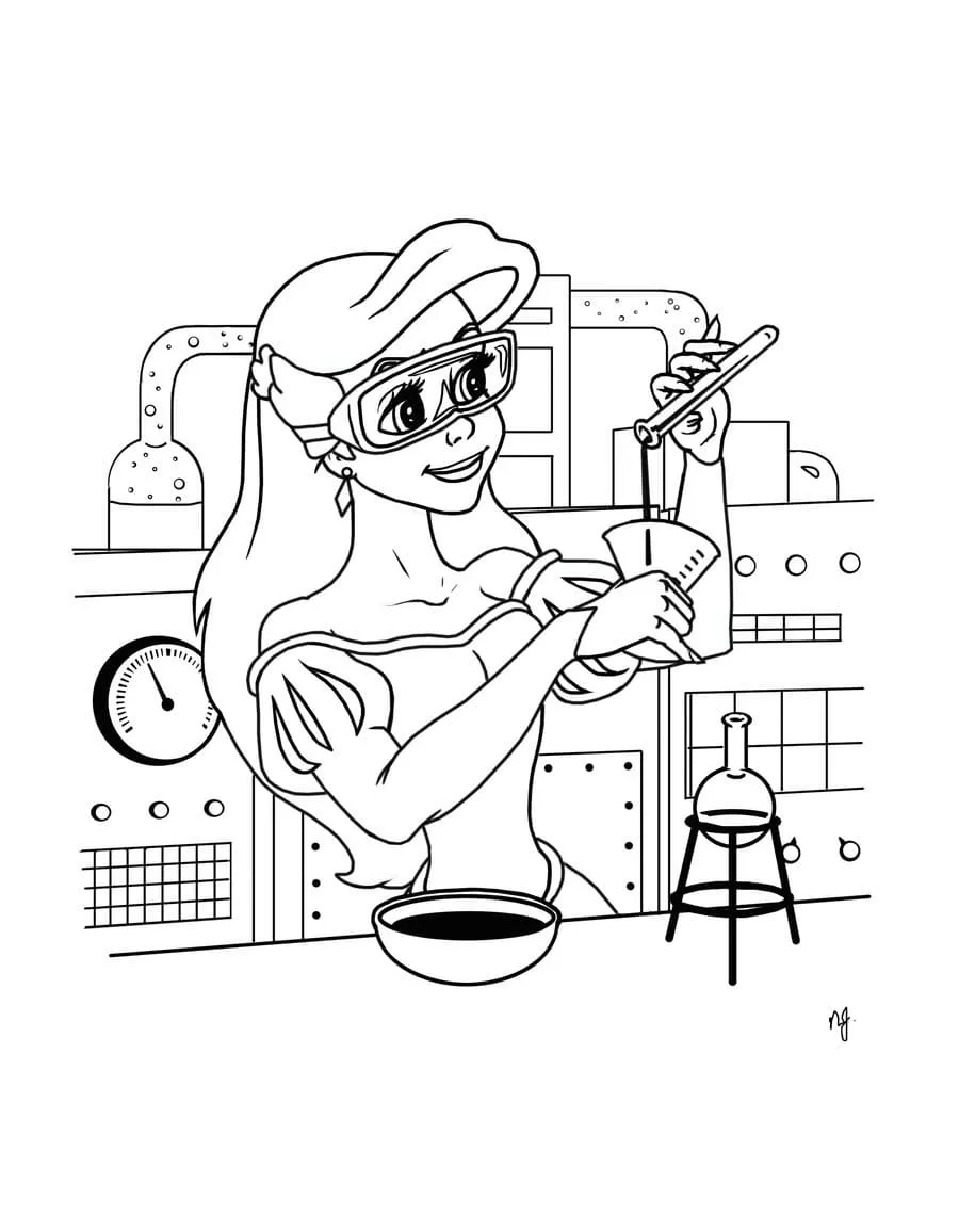 Coloring description : Download Printable Barbie Scientist Coloring Page