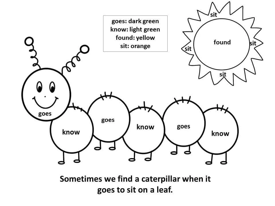 Coloring description : Download Printable Caterpillar Sight Words Coloring Page