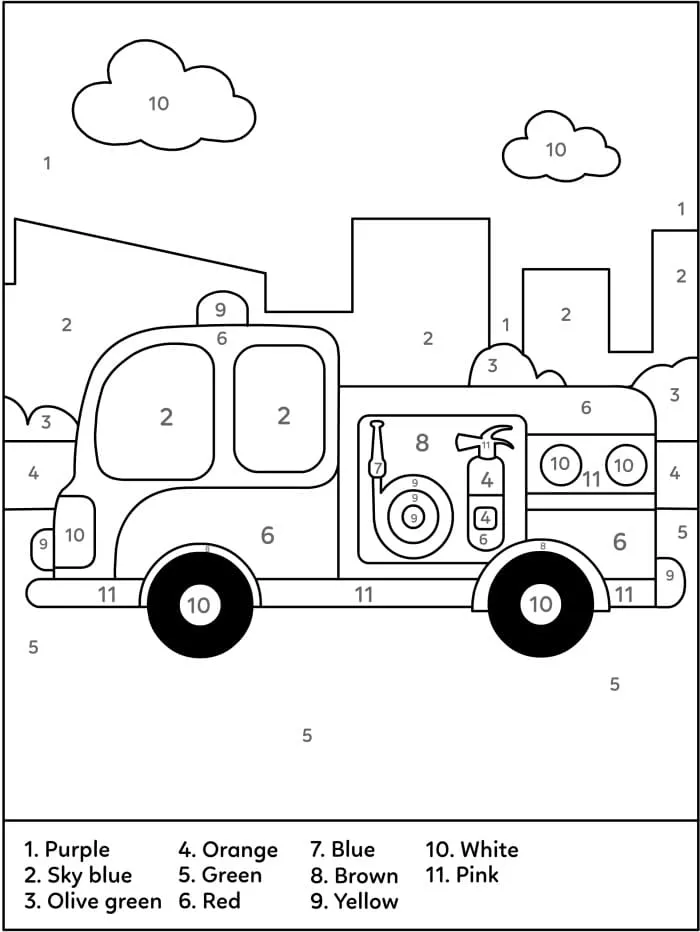 Coloring description : Download Printable Printable Fire Truck Color by Number Coloring Page