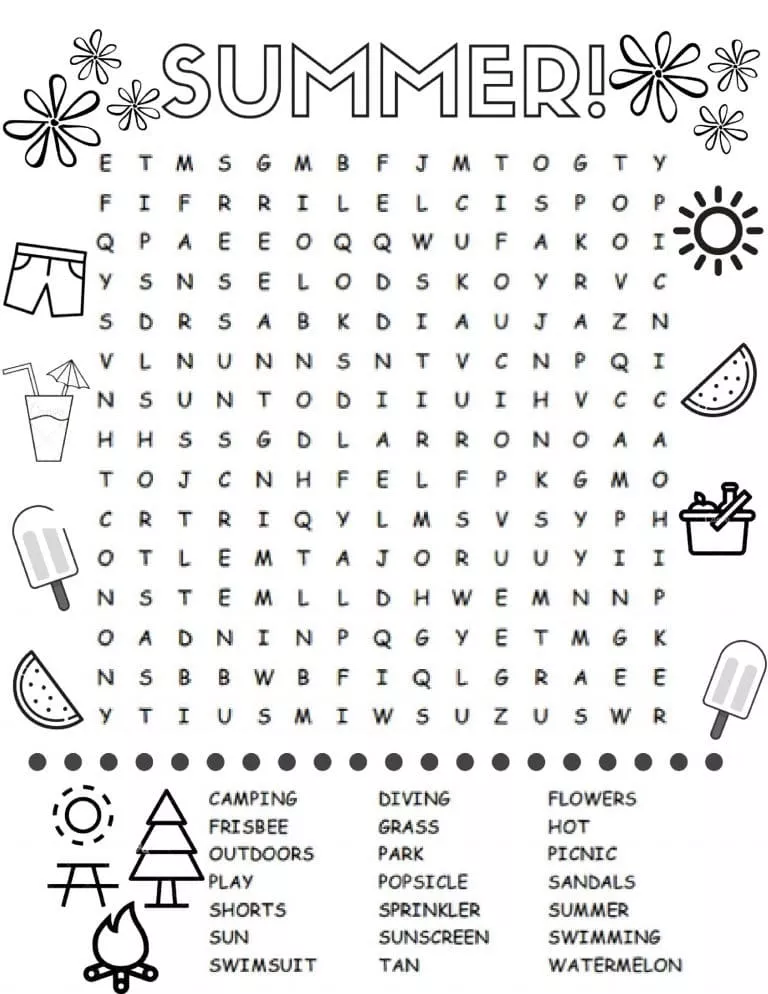 Coloring description : Download Printable Summer Word Search Puzzle Coloring Page
