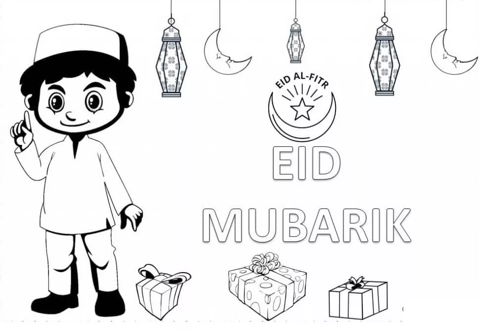 Coloring description : Download Printable Eid al-Fitr Murabak Coloring Page