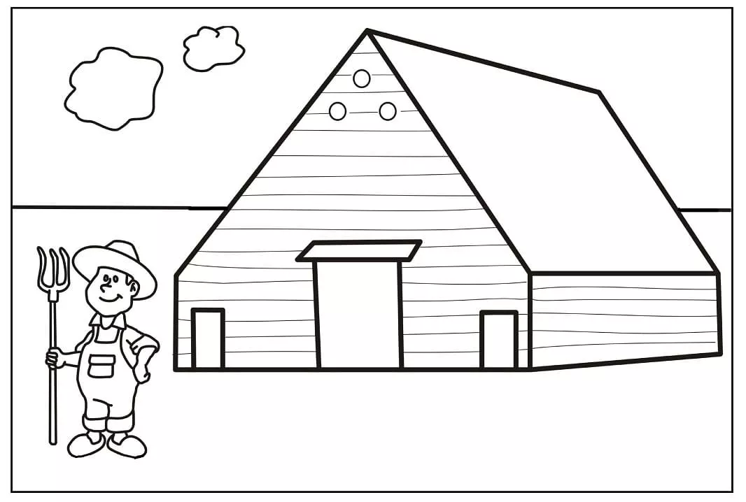 Coloring description : Download Printable Farmer and Barn Coloring Page