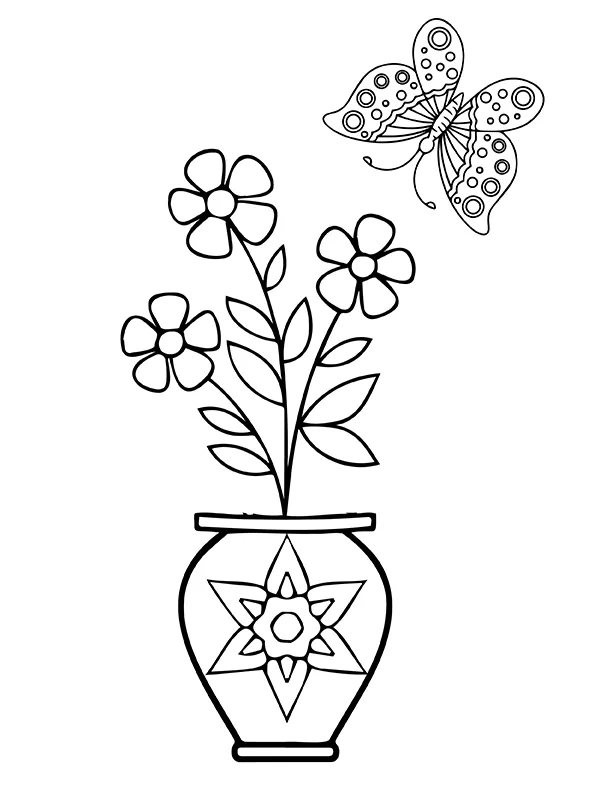 Coloring description : Download Printable Easy Flower Vase and Butterfly Coloring Page