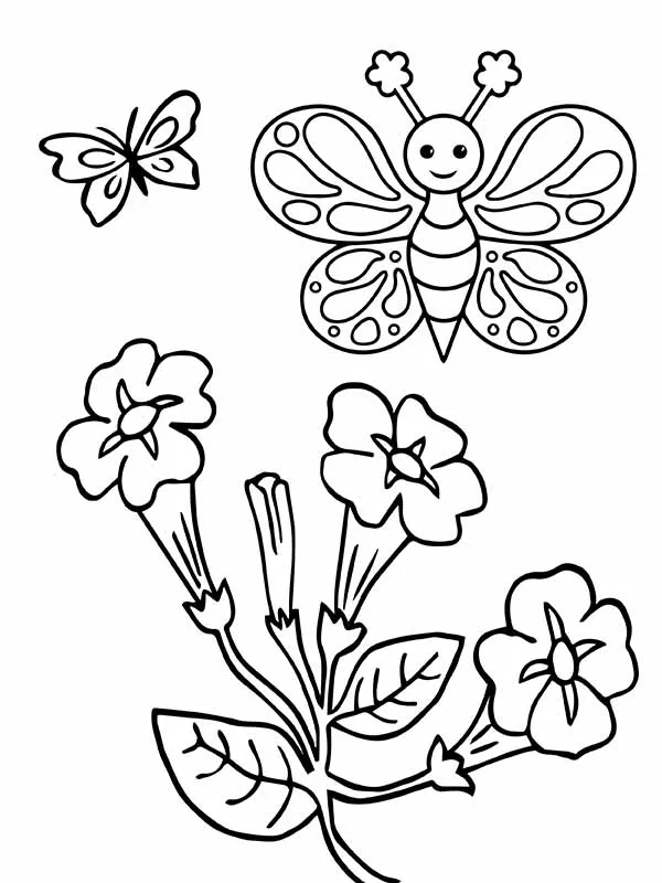 Coloring description : Download Printable Cute Butterfly and Daffodils Coloring Page