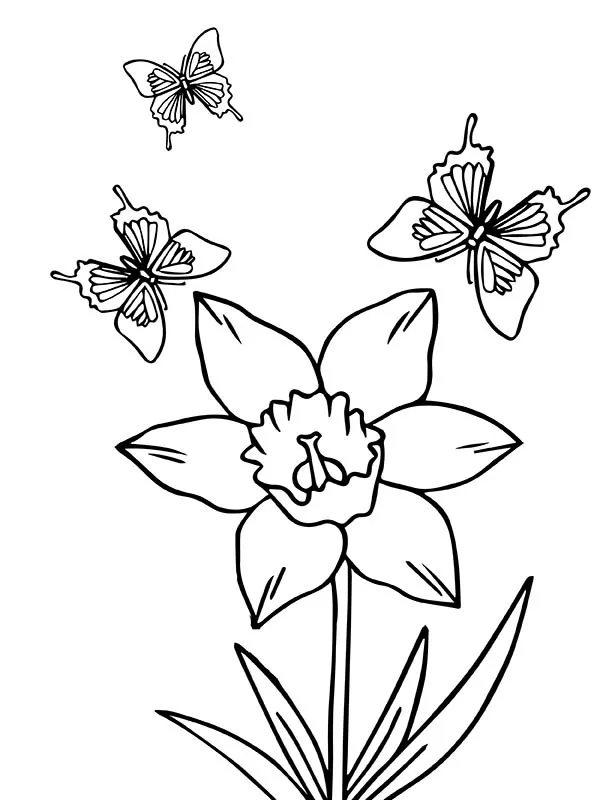 Coloring description : Download Printable Three Butterflies and Daffodil Flower Coloring Page