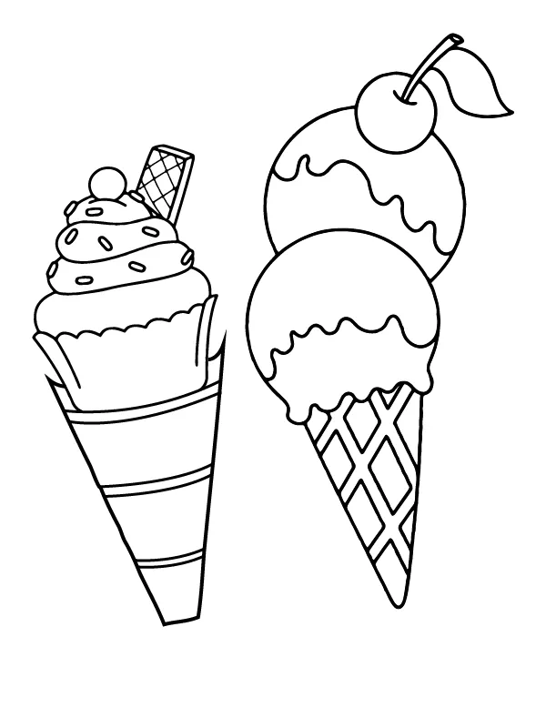 Coloring description : Download Printable Cherry Cream Cone Coloring Page