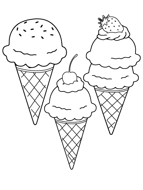 Coloring description : Download Printable Three Ice Cream Cones Coloring Page