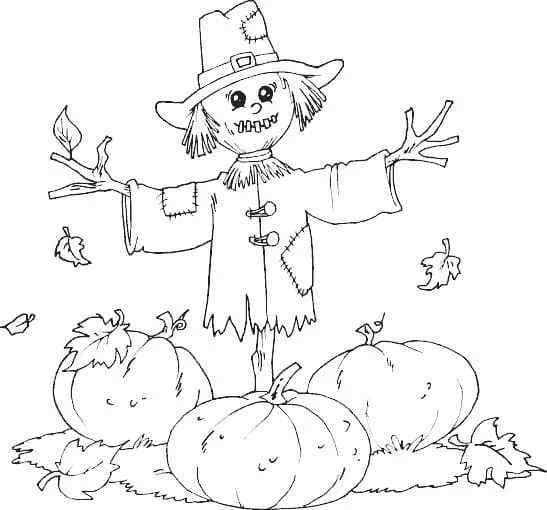 Coloring description : Download Printable Scarecrow with Pumpkin Patch Coloring Page