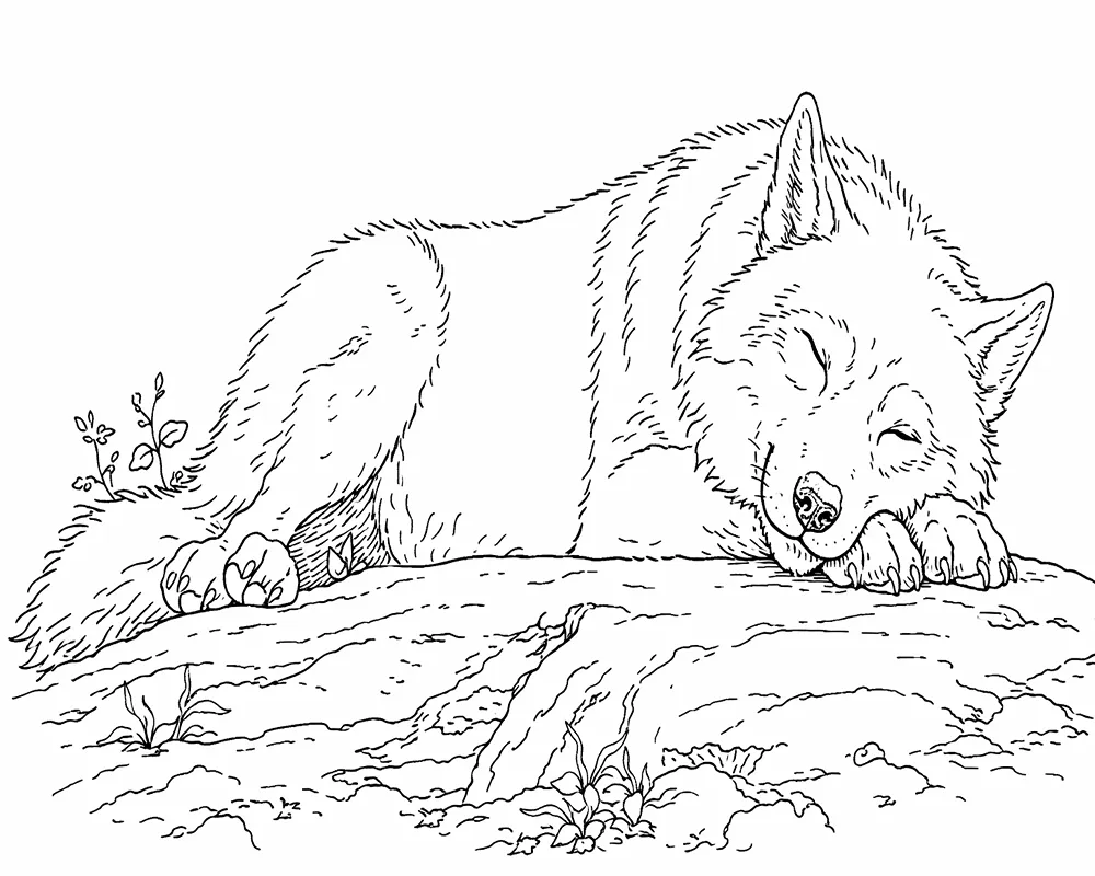 Description de l'image : Télécharger, imprimer et coloriez en ligne les meilleurs coloriages & dessins Loup Endormi