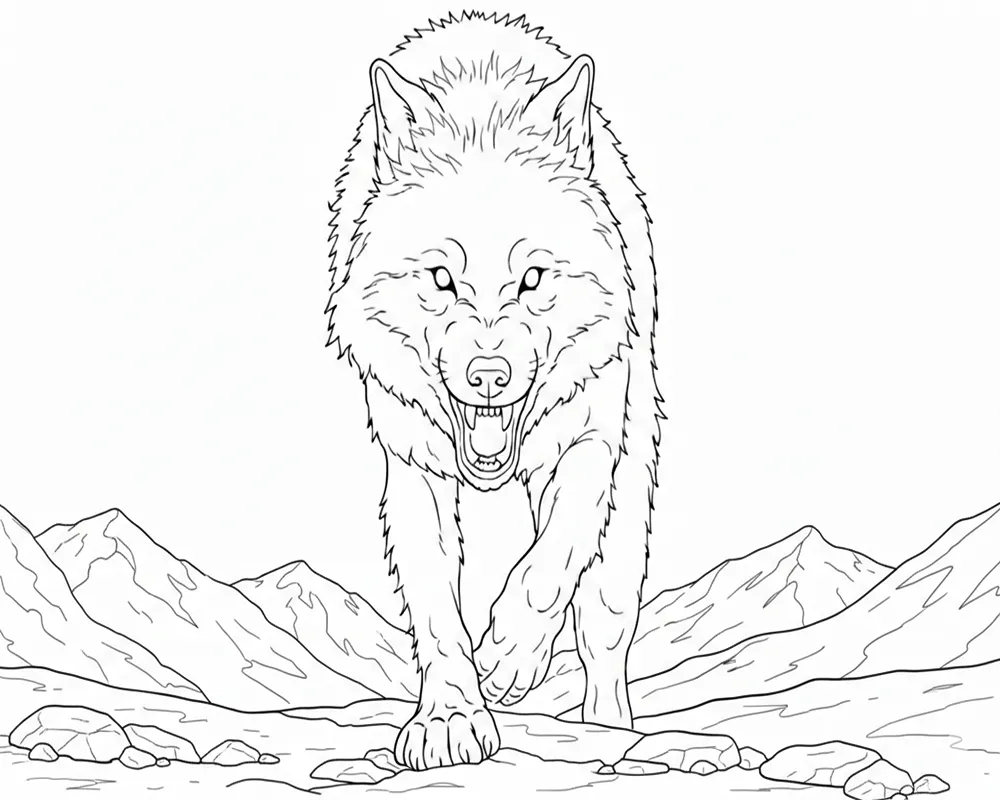 Description de l'image : Télécharger, imprimer et coloriez en ligne les meilleurs coloriages & dessins Loup Grognant Marchant