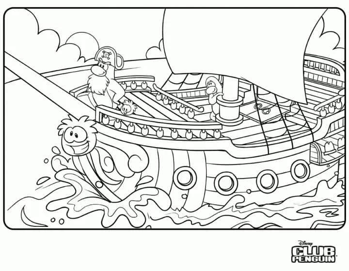 Coloring description : Download Printable Club Penguin Pirate Ship Coloring Page