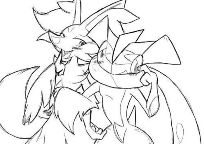 Coloring description : Download Printable Delphox and Greninja Coloring Page