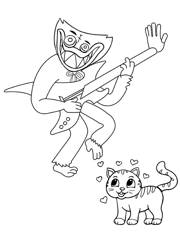 Coloring description : Download Printable Huggy Wuggy Playing Guitar and Cat Coloring Page