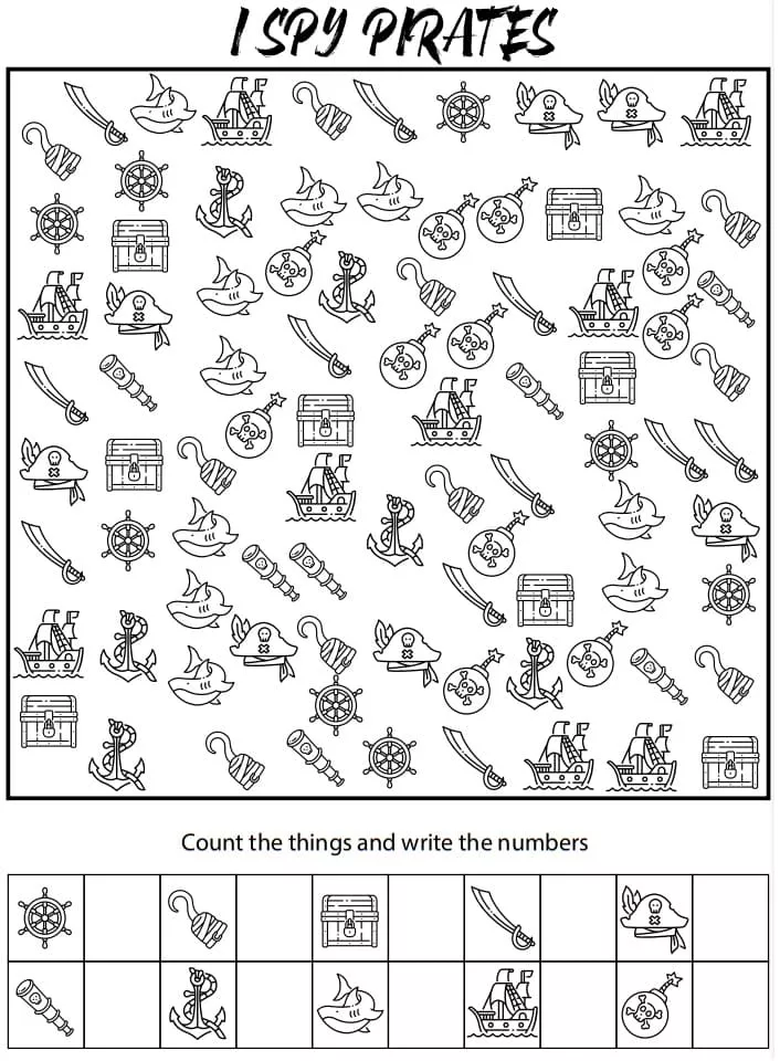 Coloring description : Download Printable I Spy Pirates Coloring Page